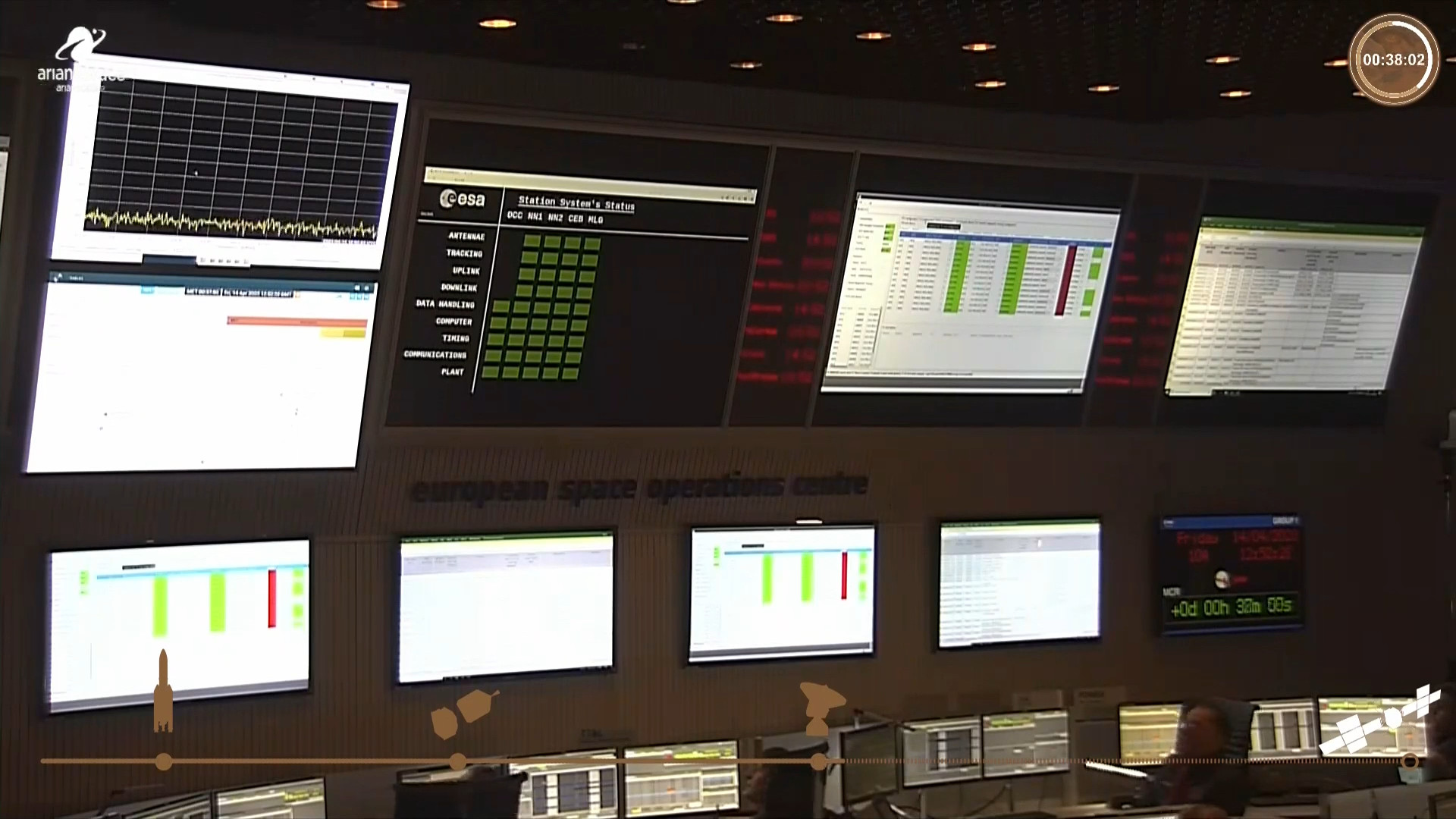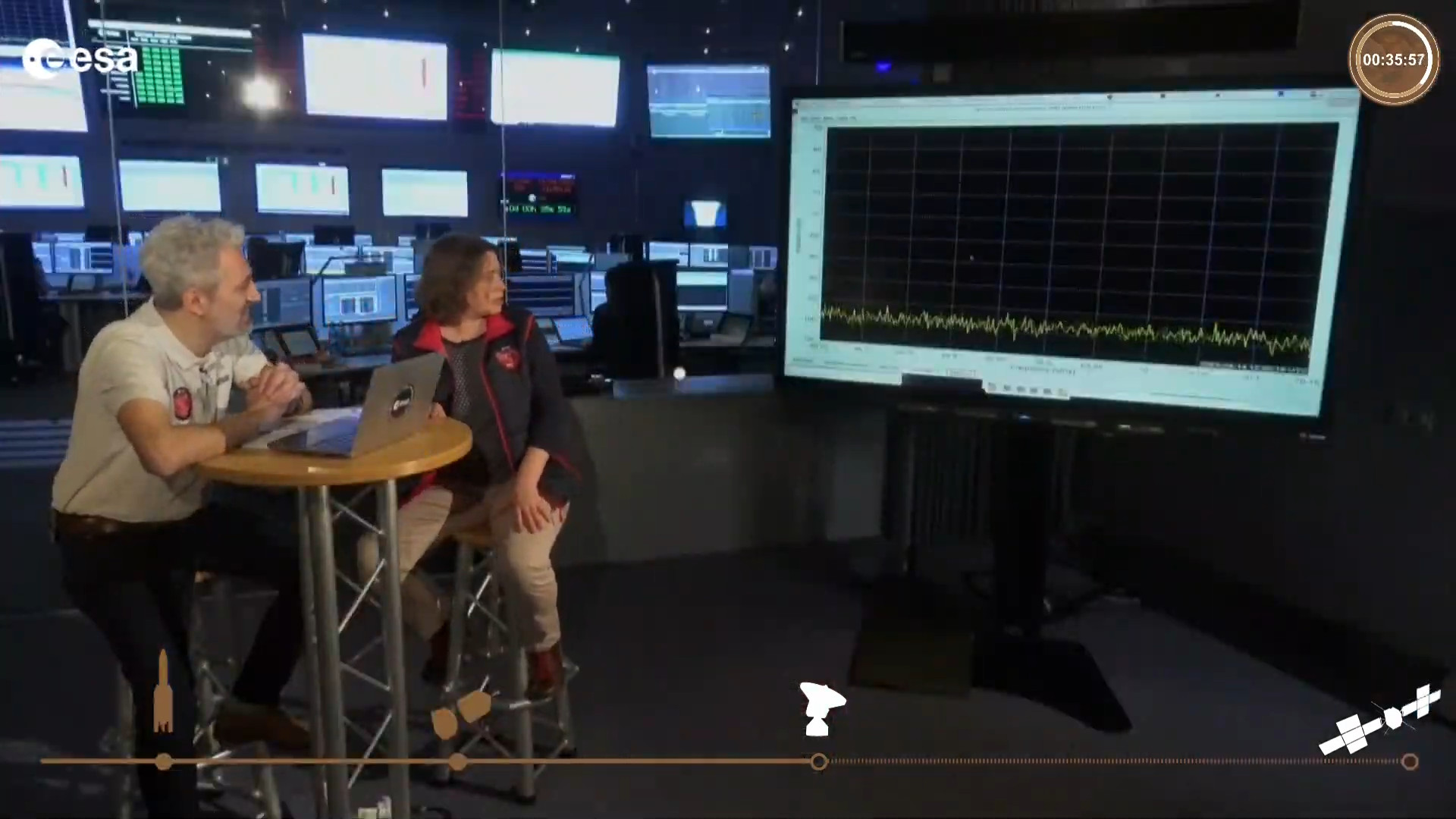 In ESOC si attende la ricezione del primo segnale da JUICE. Quando arrivera’, la linea “piatta” nello schermo avra’ una bella “montagna” di segnale al centro.