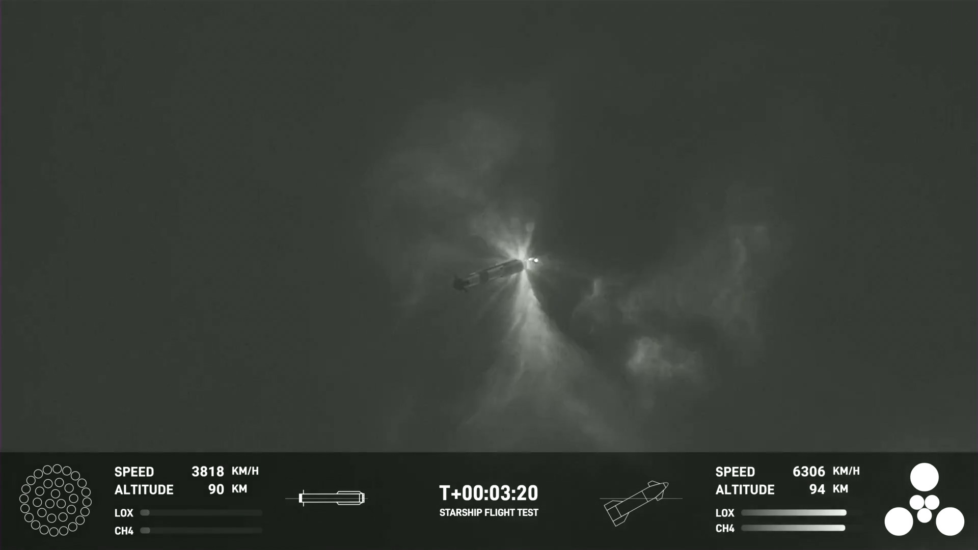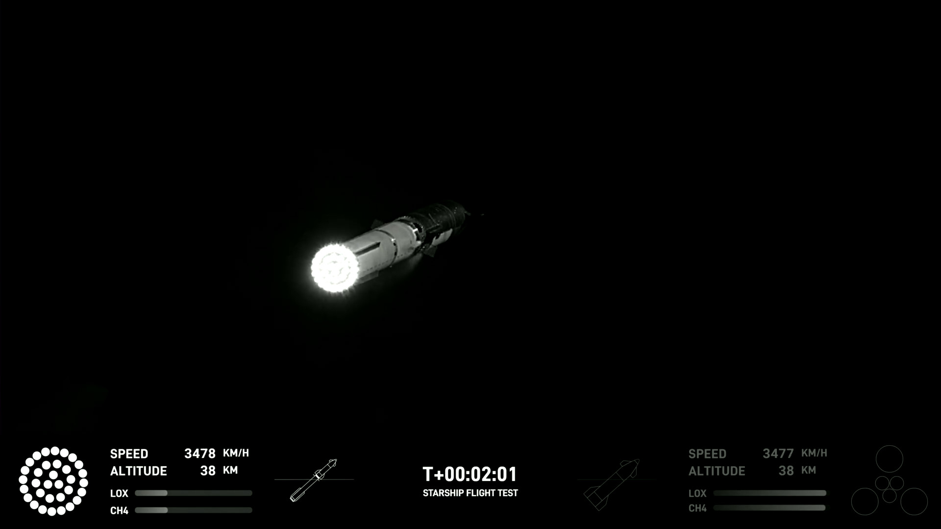 Anche tutti e 33 i raptor sembravano nominali fino allo staging. Riguardando la diretta e’ molto interessante osservare l’ordine in cui vengono spenti e poi riaccesi dopo il boosback, su un solo lato, anche per favorire la rotazione.
