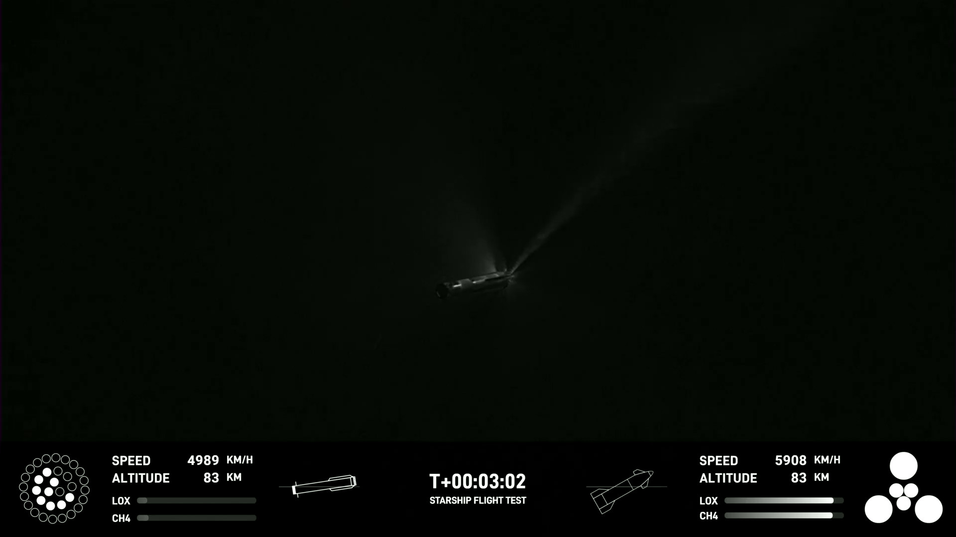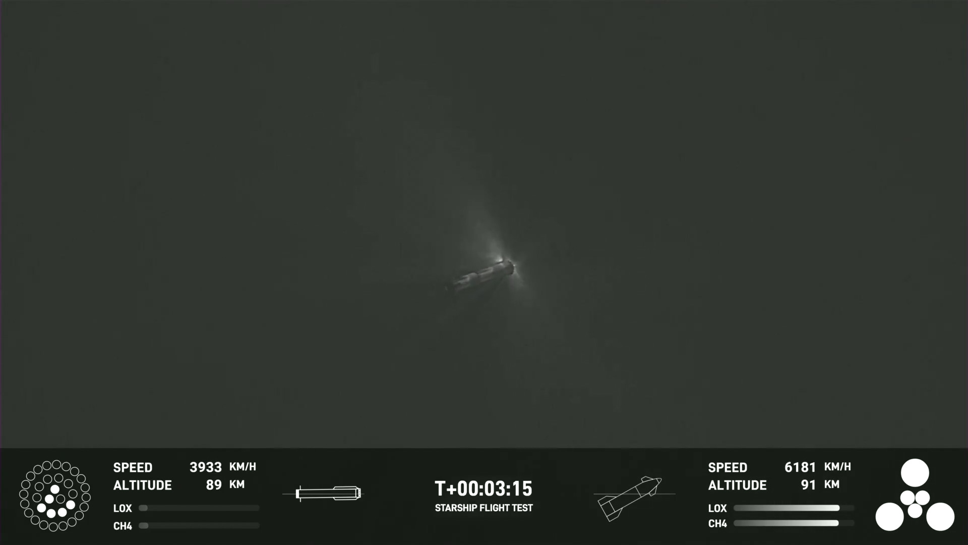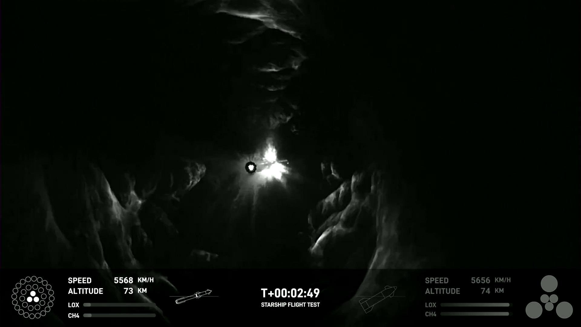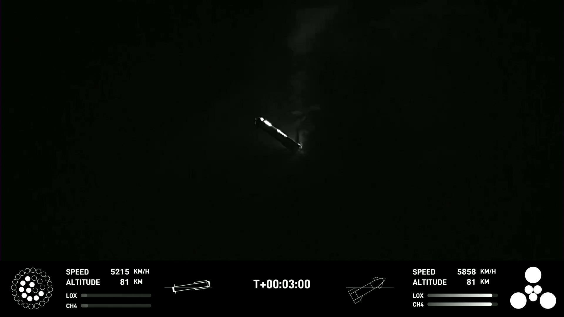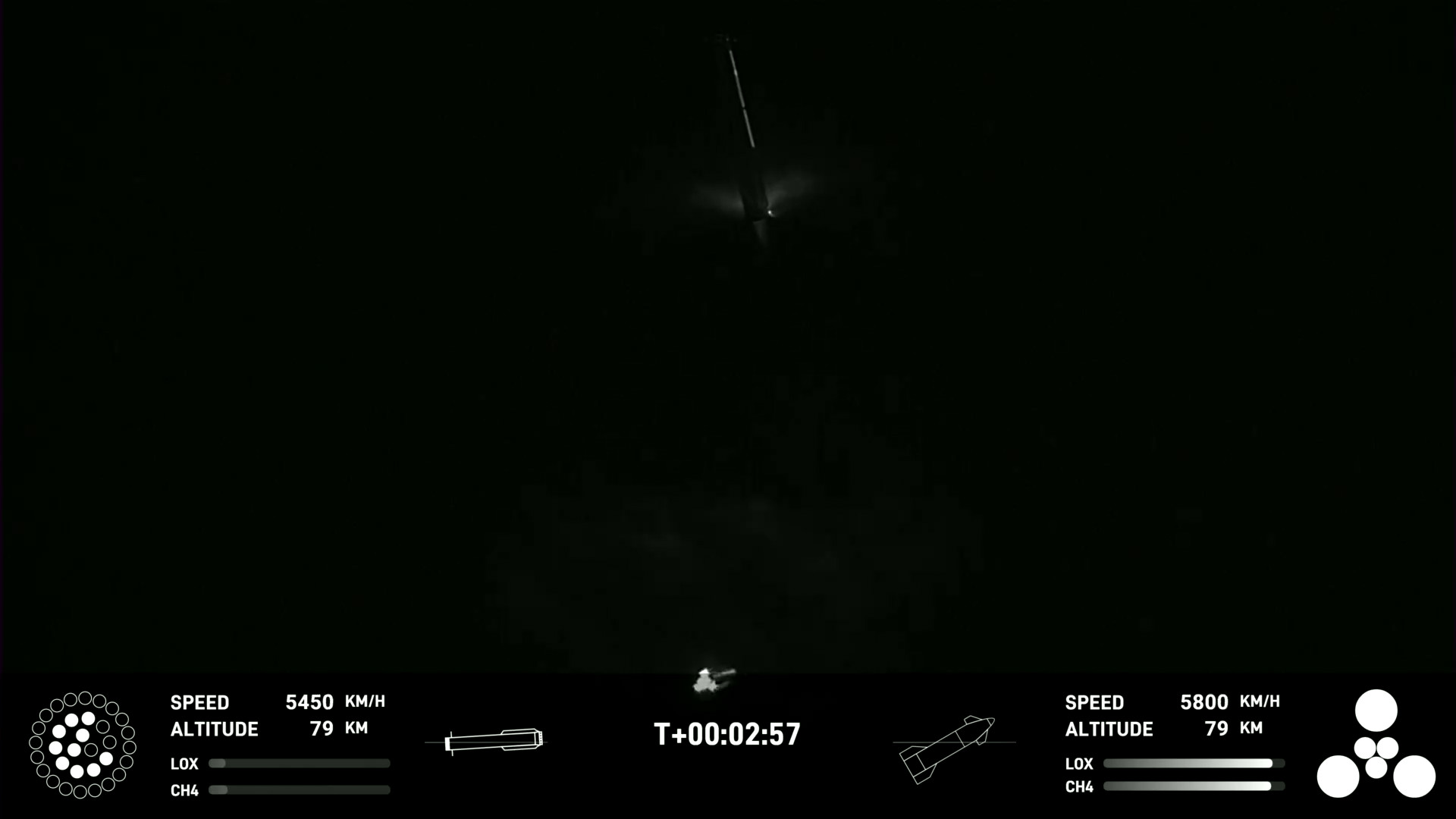 Ottima prestazione anche dei 33 Raptor del Booster, che sembrano aver funzionato tutti fino allo shutdown, e alcuni anche al boostback.