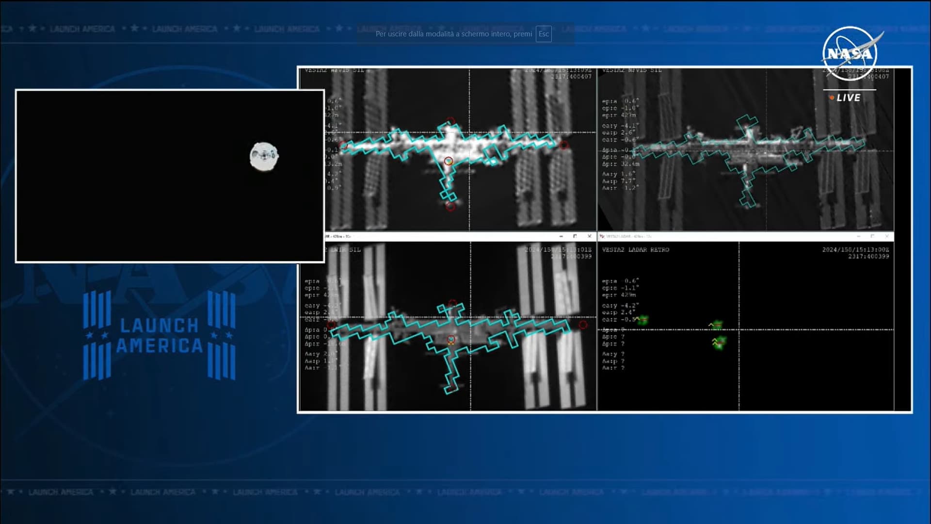 In parte ho risposto anche a te Peppe, dalla capsula solamente trasmissioni audio (tre eventi programmati durante il volo). È necessario attendere che CST-100 Starliner si trovi in prossimità dell’avamposto per avere delle immagini esterne. Come già è stato riportato da altri, dopo l’attracco gli astronauti scaricheranno il materiale video acquisito dalle telecamere di bordo