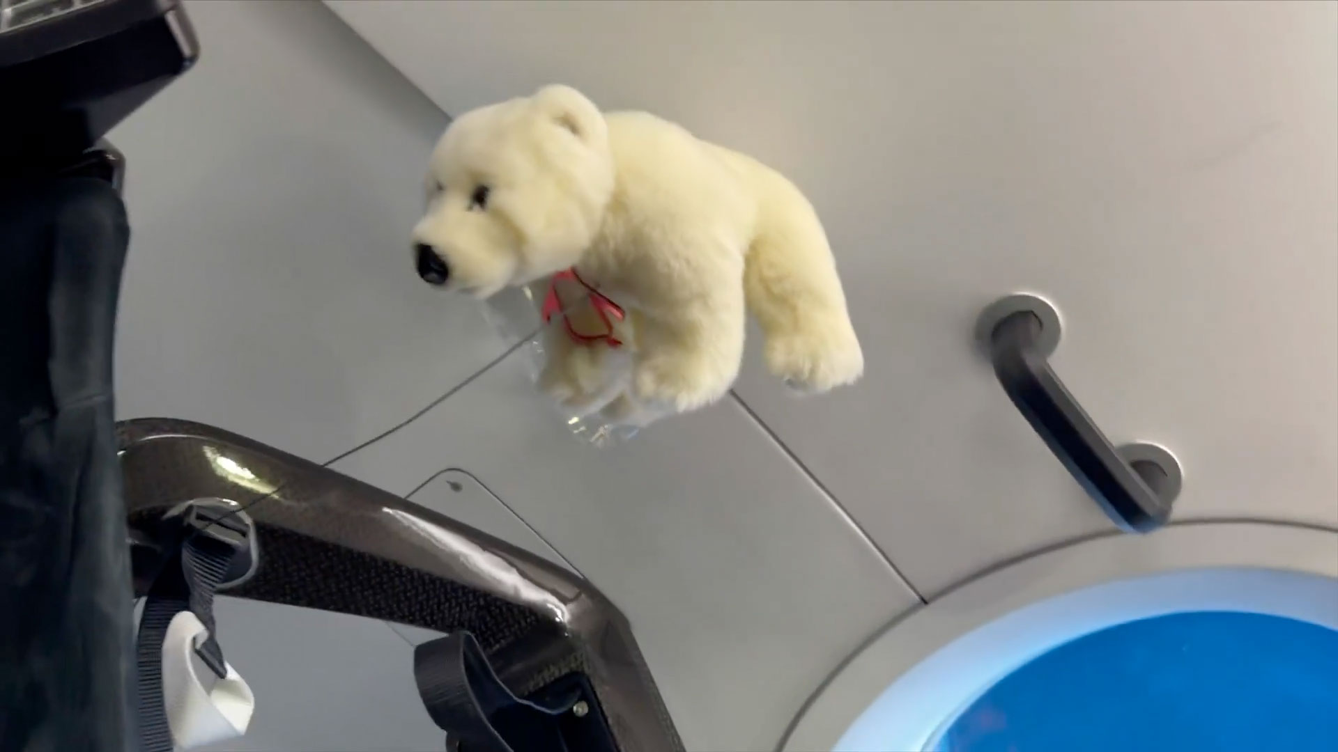 Il lancio è stato così fluido che se non fosse stato per Tyler, l’orsetto polare 0G, non si sarebbe accorto di essere in microgravitá.
