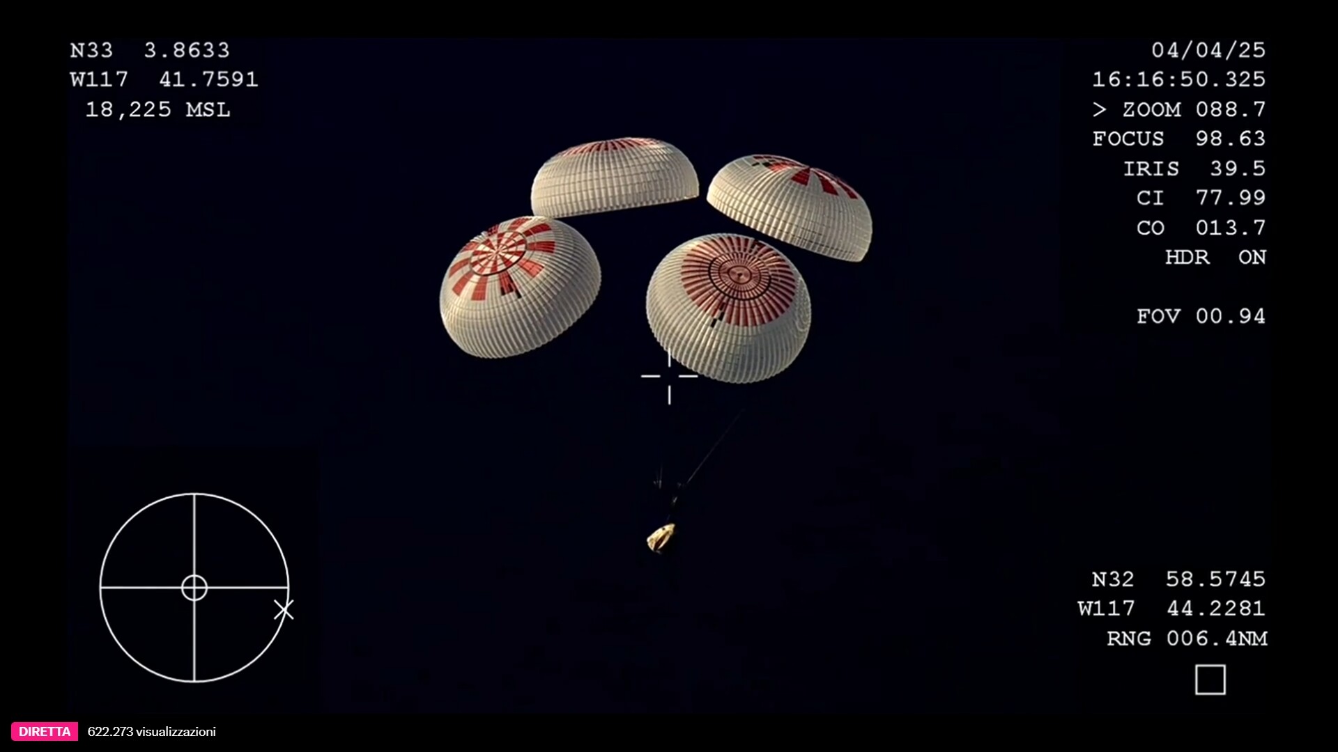 Il LOS per il rientro in atmosfera avverrà dalle 18:06 alle 18:13 CEST.