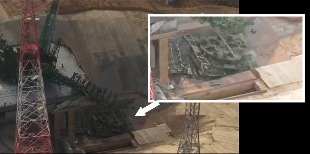 Poi la ritroviamo sul fondo della flame trench, probabilmente scivolata verso il basso per il cedimento della struttura di sostegno quando il razzo era ormai lontano.