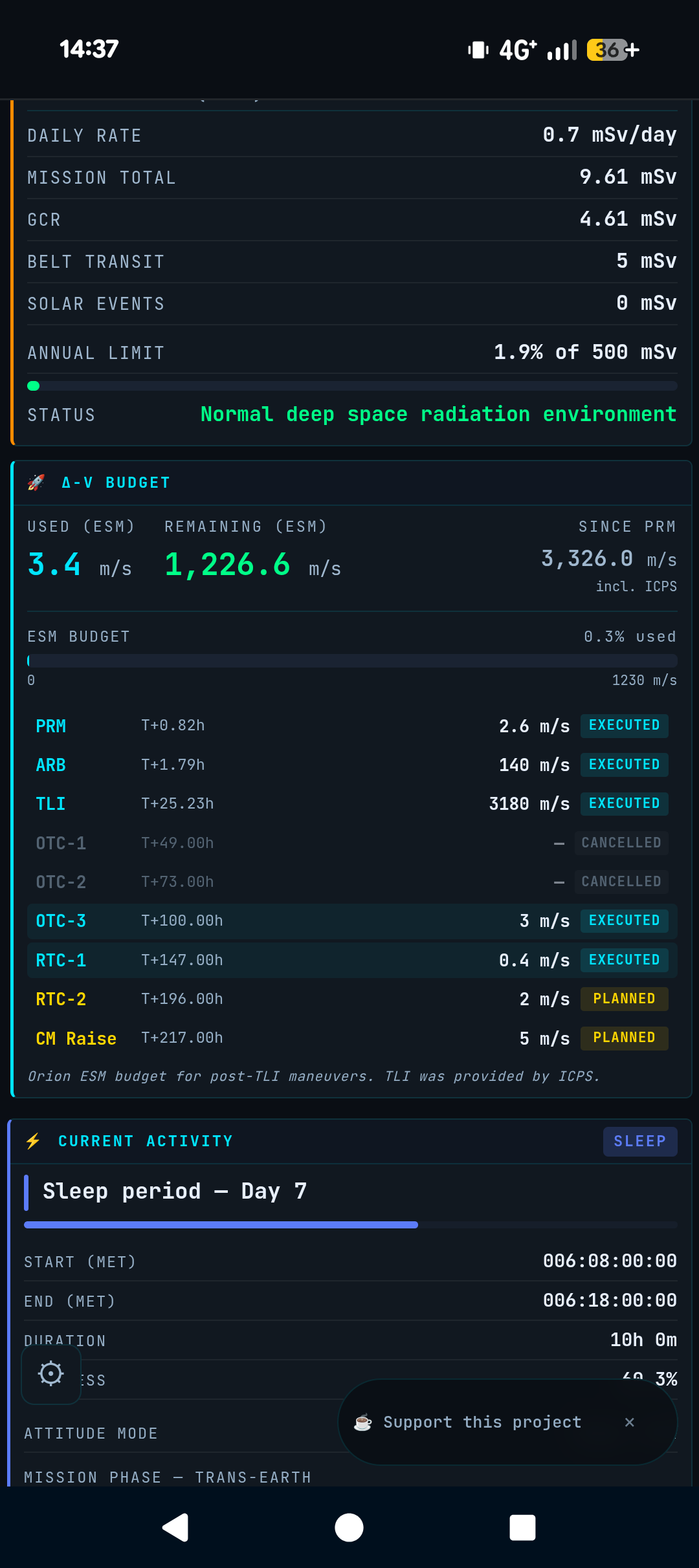 Ho dei dubbi, già il TLI era più di 300 m/s, ma vado a memoria. Di sicuro non 3 m/s.