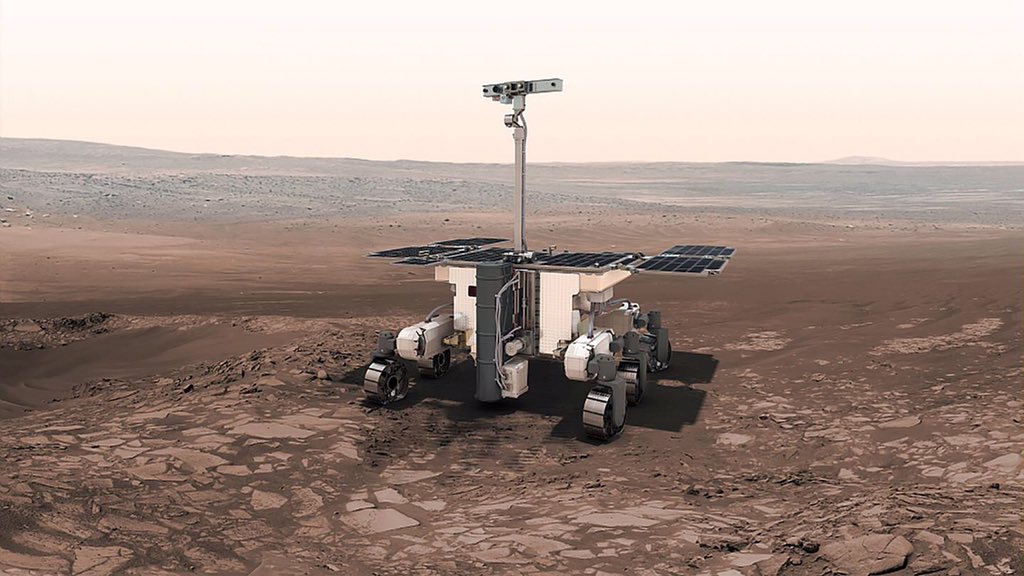 Proseguono i test sul gemello di Rosalind Franklin, chiamato Ground Test Model. Sono già stati testati i sistemi di movimento, per cui ora sono state testate le camere e gli scanner: il terreno di prova è caratterizzato da aeree sabbiose, rocce di varie dimensioni e condizioni di luce simili all’ambiente marziano.