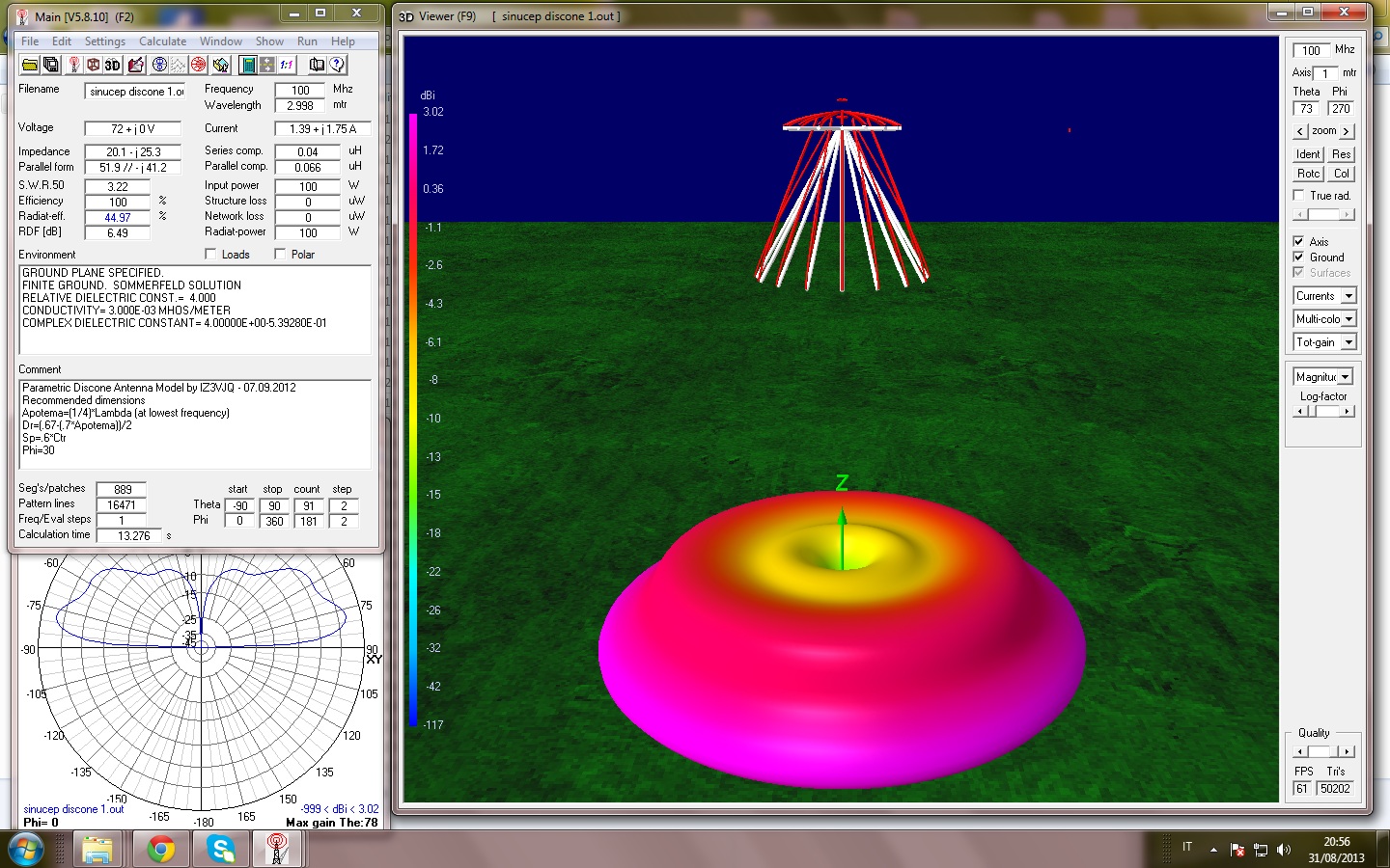 Come avevo scritto ho usato 4nec2 che trovo un programma fantastico. Permette di disegnare, analizzare e ottimizzare antenne. Ed è freeware!