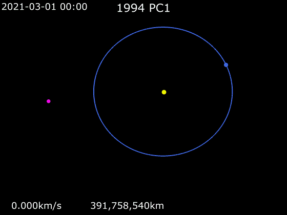 Su Wikipedia c’è anche una bella animazione delle posizioni orbitali della Terra e di 1994 PC1