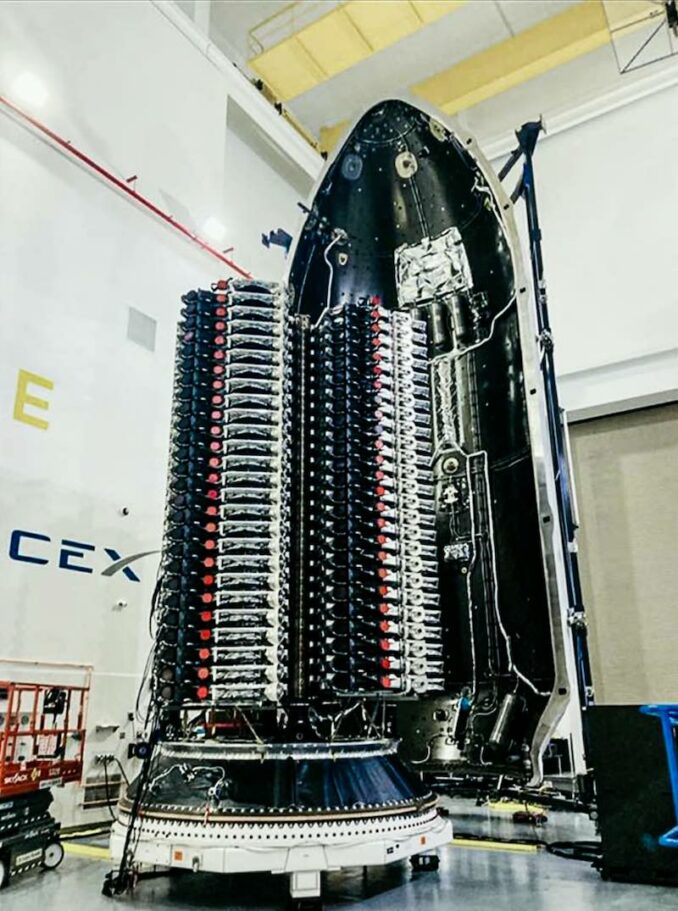 Un lotto di 46 satelliti per la mega-costellazione Starlink - il progetto di SpaceX per il sistema di comunicazione Internet basato sullo spazio.