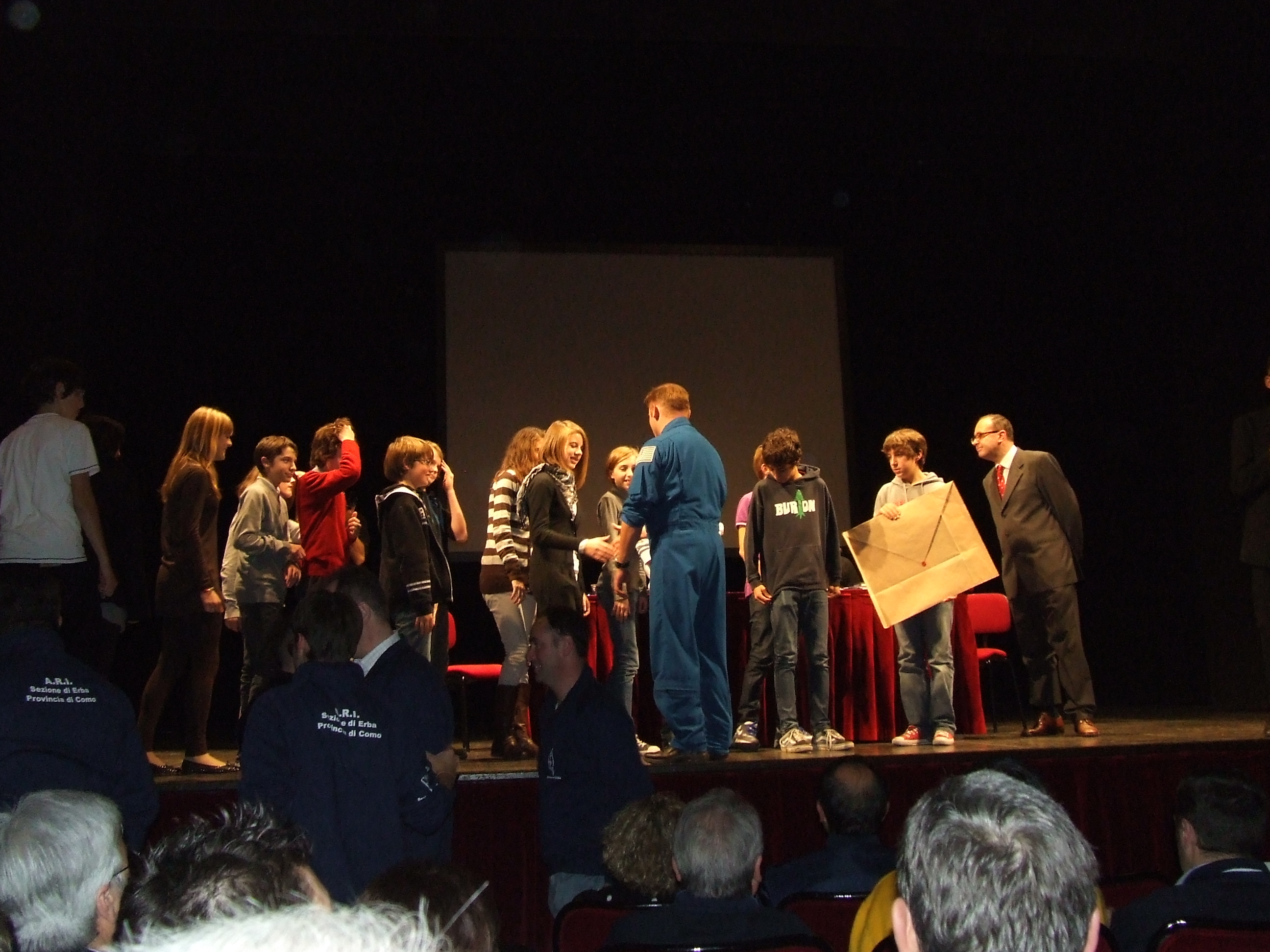 Finalmente arriva il momento topico della visita del Colonello Fincke in Italia: L’incontro con i ragazzi delle scuole al Teatro Sociale di Lecco.
