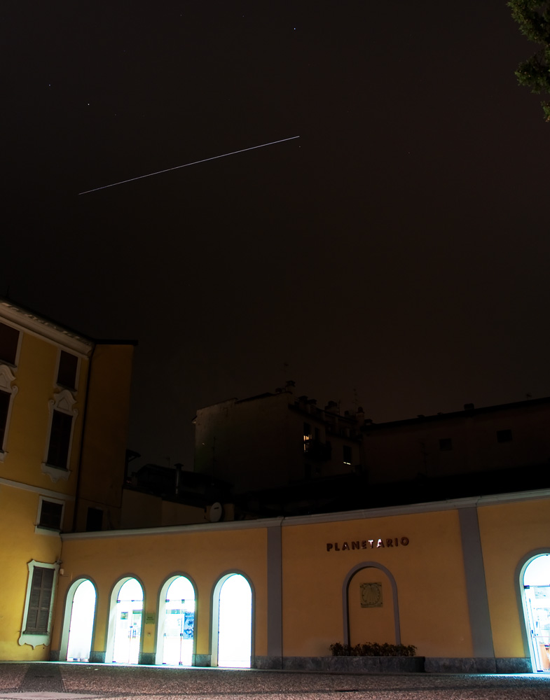 Il planetario di Lecco, sede della manifestazione, e la ISS che transita nel cielo alle 18:20 di sabato.
