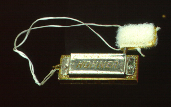 I primi strumenti musicali ad essere suonati nello spazio furono un’armonica a bocca e dei campanelli che oggi sono esposti allo Smithsonian National Air and Space Museum di Washington D.C. Eccoli, ancora muniti del velcro di cui Schirra e Stafford si sono serviti per fissarli all’interno della loro Gemini VI .