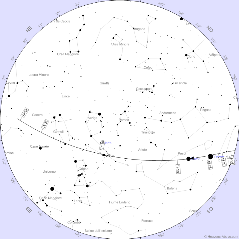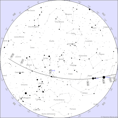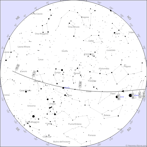In particolare se vi trovate in prossimità della linea che idealmente congiunge Lucca a Cesena, dovreste vederli passare veramente vicini ai due pianeti: potrebbe essere l’occasione di fare qualche foto particolare.