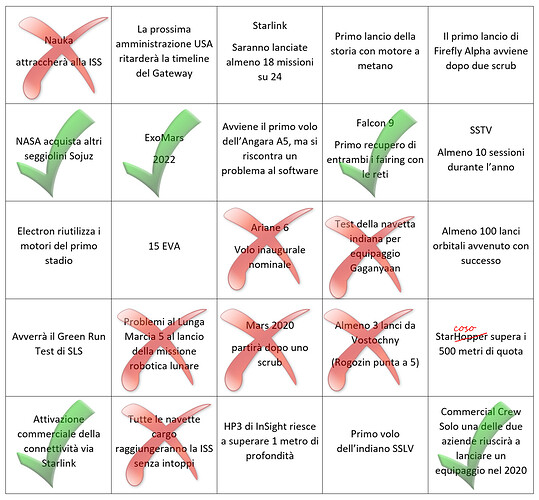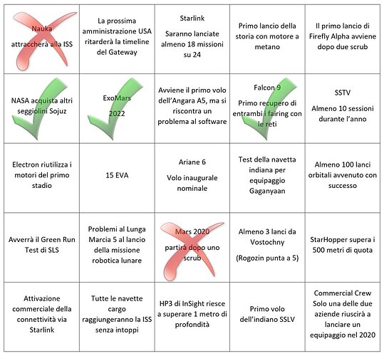 Fila 1 caselle 4/5 molto improbabili a meno che spacex o firefly ci facciano un regalone di natale