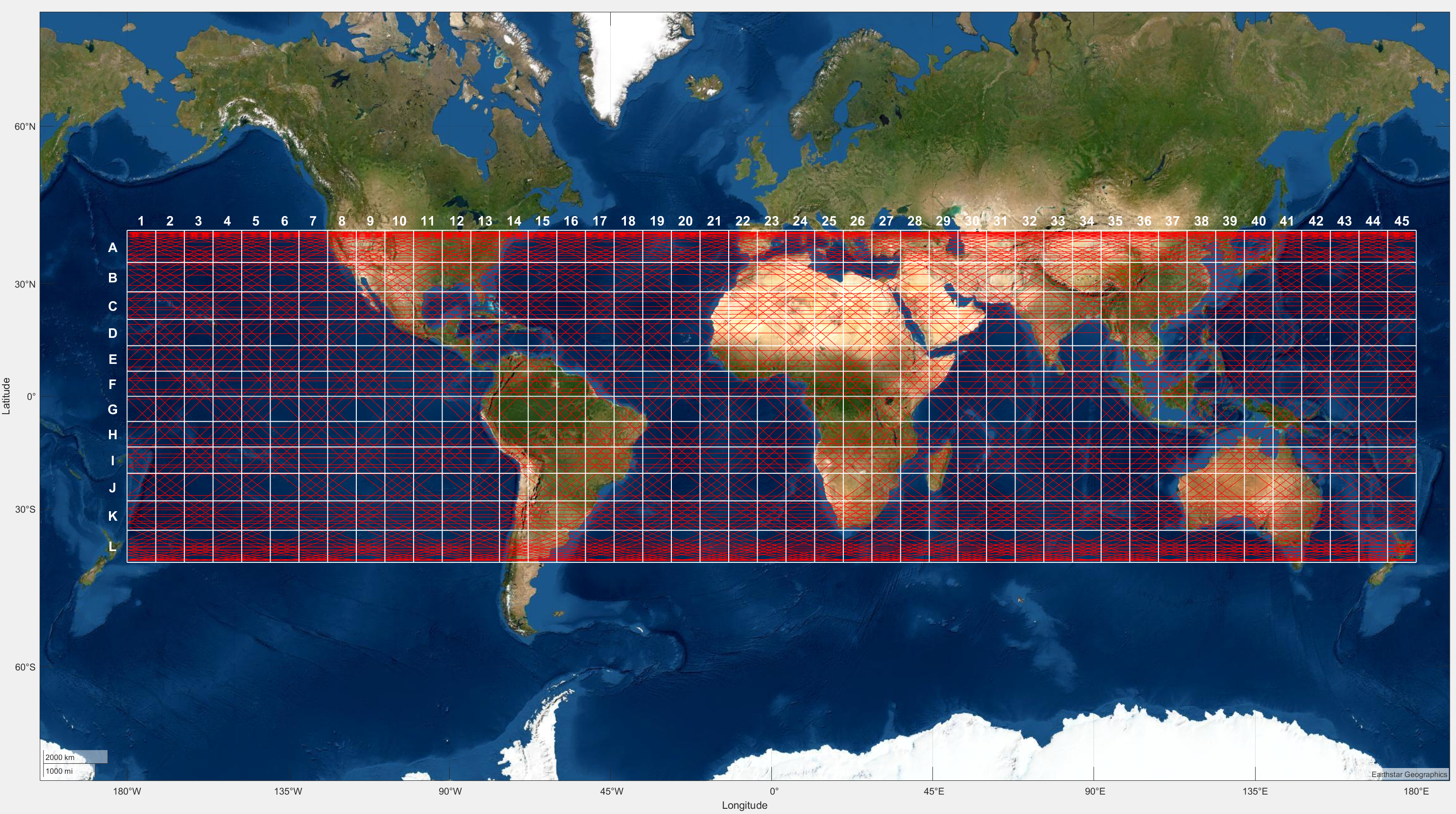 Le righe A e L hanno piu’ probabilita’ di essere colpite, essendo sull’inviluppo delle orbite dove sta piu’ a lungo. Io dico A-32, a spanne sul Karakorum, giusto perche’ e’ un posto interessante.