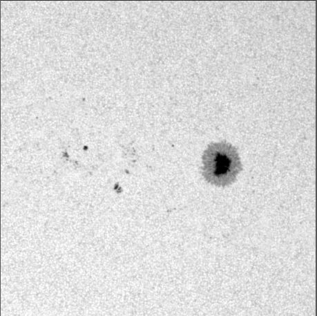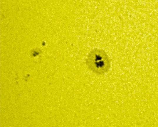 Domenica la macchia aveva un ponte luminoso, che poi si è assottigliato ed è scomparso. Misteri dei campi magnetici solari …