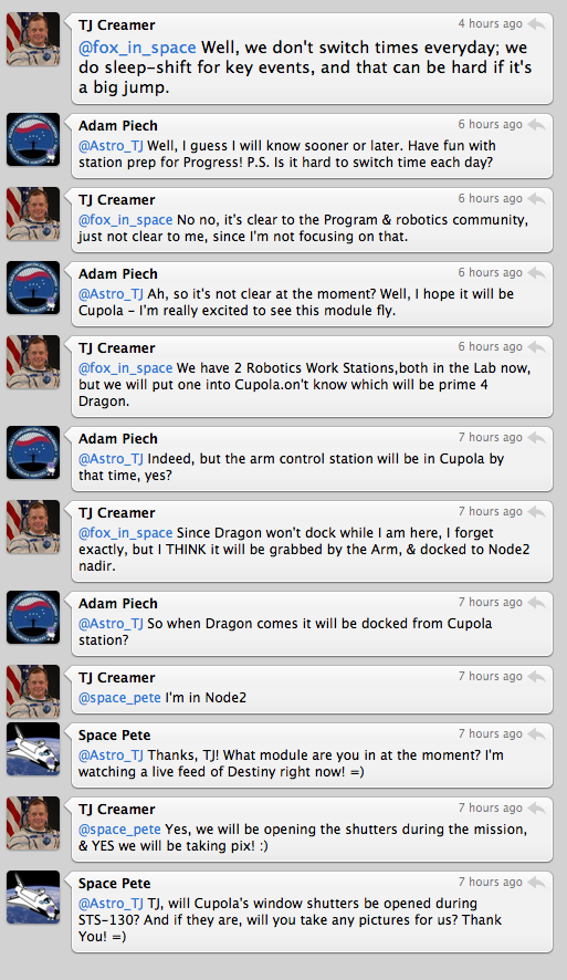 Prima, infatti, i tweet dovevano essere inviati a terra via email, dove personale di supporto specializzato provvedeva ad aggiornare i profili dei vari astronauti.
