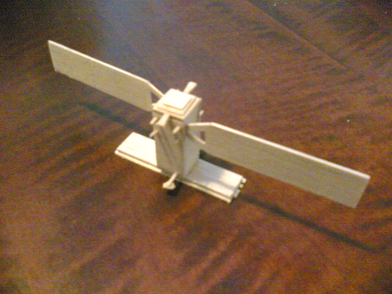 E’ incredibile la facilità con cui si puo’ lavorare la balsa! Ero partito oer fare solo uno scatolotto con attaccati i due pannelli e l’antenna SAR, ma poi mi sono fatto prendere la mano coi particolari, e ho fatto pure le antenne PDHT e i supporti per i pannelli!