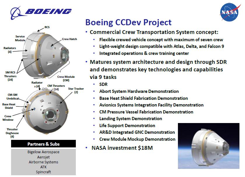 La capsula progettata da Boeing, ridenominata CST-100, ha già raggiunto il 50-60% delle milestones programmate sino ad ora e quasi tutte con puntualità se non in anticipo.