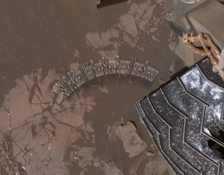 Curiosity è sempre attento alle fonti e le porta a spasso, legate alla sua zampina, anche su un altro pianeta.