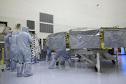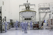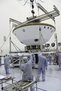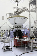 Alla Payload Hazardous Servicing Facility al Kennedy Space Center, i tecnici hanno installato un pannello solare sul cruise stage di Mars Science Laboratory.