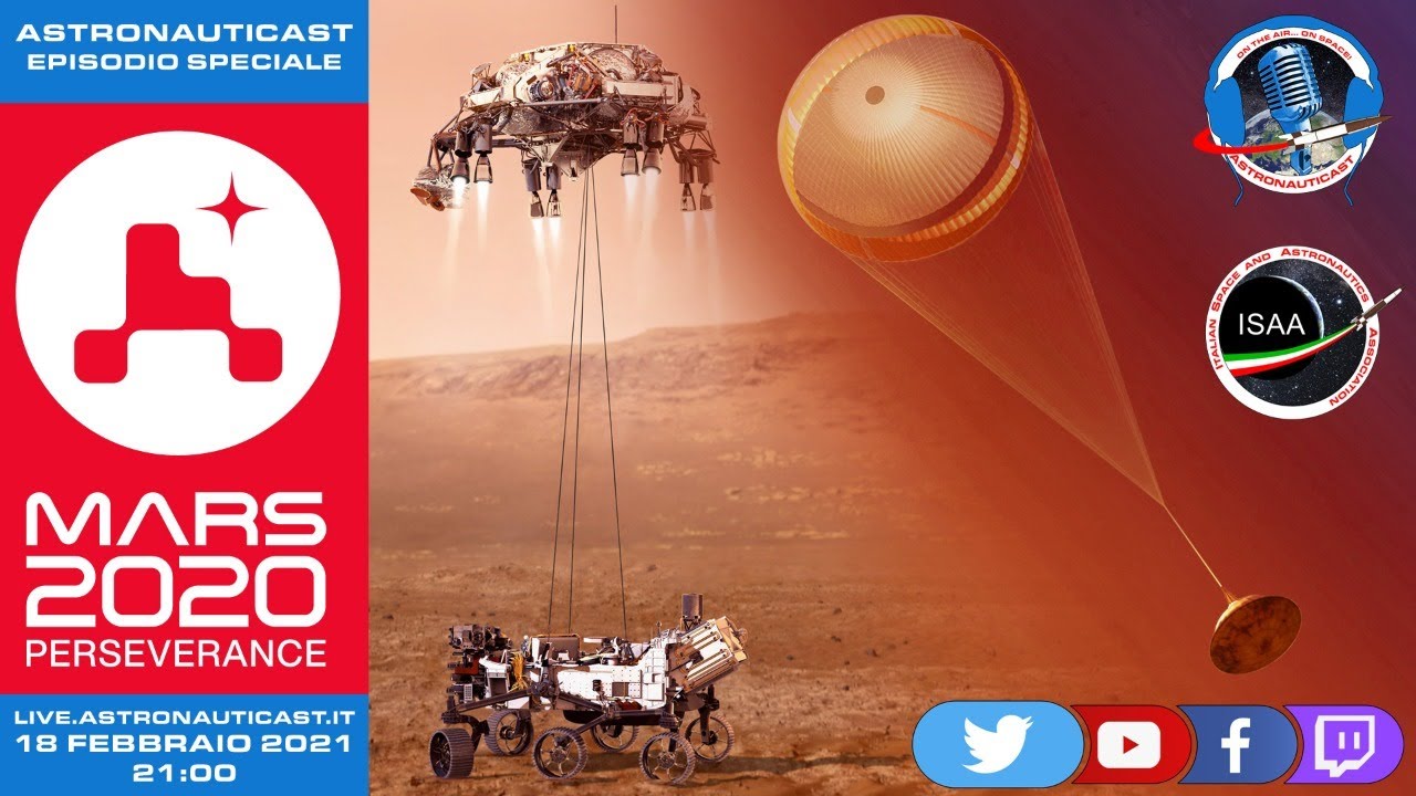 Episodio speciale di AstronautiCAST per seguire l’atterraggio su Marte di Perseverance, giovedì 18 febbraio 2021 alle ore 21:00. Seguiteci in diretta qui, il countdown indica quanto tempo manca all’inizio: