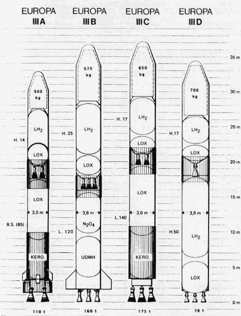 Questo è stato successivamente Europa-3 proposta più tardi Ariane 1 dei vettori