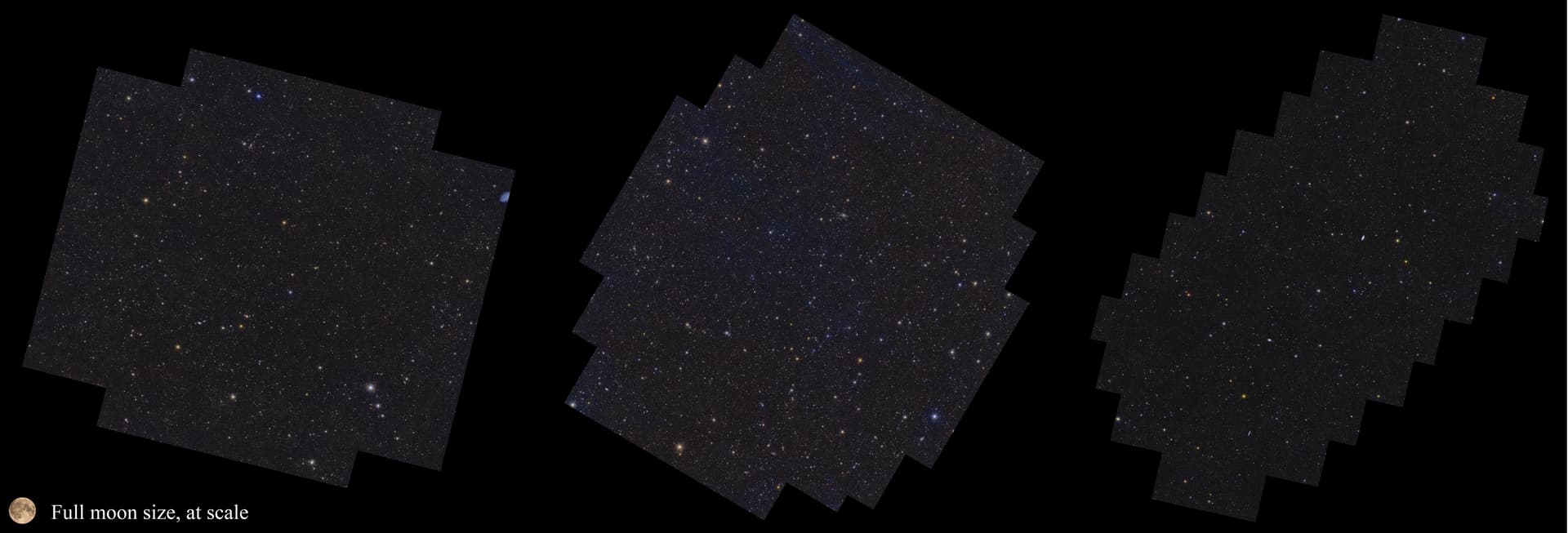 But the first glimpse of 63 square degrees of the sky, the equivalent area of more than 300 times the full Moon, already gives an impressive preview of the scale of Euclid’s grand cosmic atlas when the mission is complete. This atlas will cover one-third of the entire sky – 14 000 square degrees – in this high-quality detail.