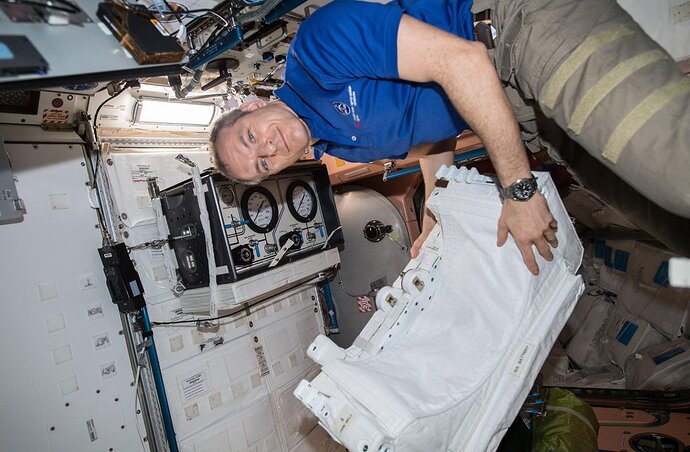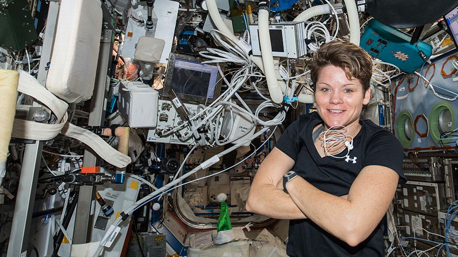 Oggi Anne McClain ha indossato una speciale tuta che impedisce la migrazione dei liquidi corporei (acqua e sangue) verso la parte alta del corpo.