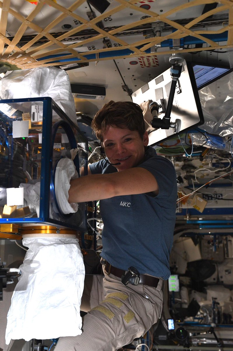 Oggi Anne McClain ha aperto il Fluids Integrated Rack ed ha predisposto dei campioni di proteine cristallizzate all’interno di uno speciale microscopio per poterli fotografare. Questa ricerca supporta una serie di esperimenti biofisici con lo scopo di esplorare benefici farmaceutici per l’umanità.