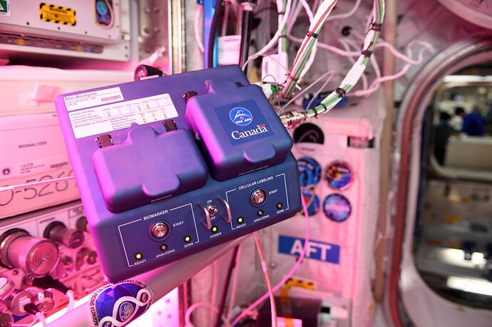 CSA/Bio-analyzer : L’equipaggio ha iniziato un’analisi di un campione di controllo, utilizzando gli strumenti presenti nel Bio-Analyzer, il marcatore cellulare e il bio-marcatore. Benché la Stazione Spaziale internazionale sia equipaggiata con gli strumenti di ricerca per le scienze della salute e della vita, la strumentazione esistente per l’analisi di campioni biologici è quasi del tutto carente rispetto alle capacità di un laboratorio sulla Terra. Per ovviare a questo problema, saranno effettuati dei test sul Bio-analyzer, che è stato specificamente sviluppato per quantificare le molecole e le cellule nei liquidi corporei come sangue, urina o saliva. L’analisi viene effettuata su campioni di sangue prelevati tramite una puntura di un dito e lo strumento fornisce i dati entro 2 ore dalla raccolta del sangue.