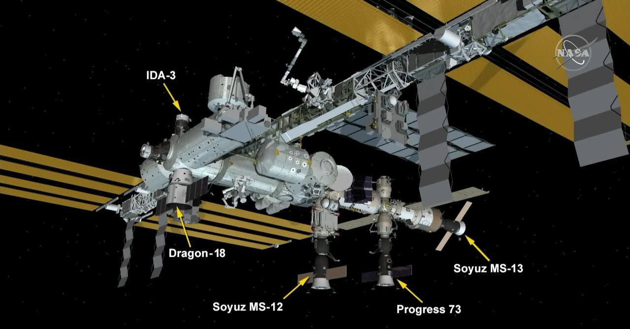 Mobile Servicing System (MSS) Operations: Ieri sera e questa mattina, i controllori del braccio robotico hanno attivato il Canadarm2 e poi hanno afferrato ed estratto l’ International Docking Adapter-3 (IDA-3)dalla sezione non pressurizzata del veicolo cargo Dragon CRS-18. Con l’utilizzo del manipolatore agile per scopi speciali (Dextre o Canada Hand) e del braccio robotico Canadarm2, i controllori hanno manovrato IDA-3 verso la configurazione di partenza per l’attività extra-veicolare di domani.