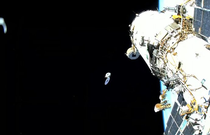 Qui il rilascio del contenitore del cavo ethernet (gli astronauti ci hanno scherzato un po su: “ecco da dove arrivano gli avvistamenti UFO”)