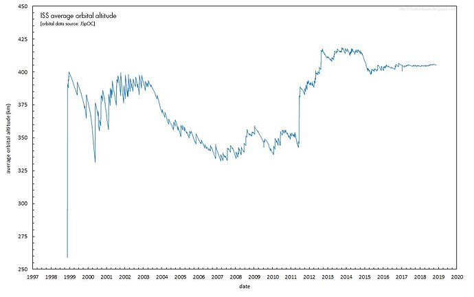 Fino ai primi anni '10 non solo stavano più in su per via dello Shuttle, come ha già scritto @RikyUnreal , ma anche facevano cicli di reboost moto più lunghi: alzavano di molto l’orbita con un singolo reboost, poi la facevano decadere per molti mesi fino a raggiungere il minimo in corrispondenza dei lanci Shuttle, per poi rialzarla di nuovo.