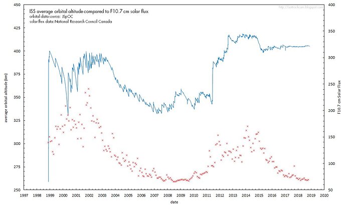 Leggevo che l’aumento della densità atmosferica dovuta ai flussi solari, era anche tenuta in conto (a quote più basse) non solo per il il decadimento dell’orbita, ma anche per evitare di superare un carico di G (se non ricordo male 1 microG) dovuto al drag atmosferico e che avrebbe influito negativamente sugli esperimenti.