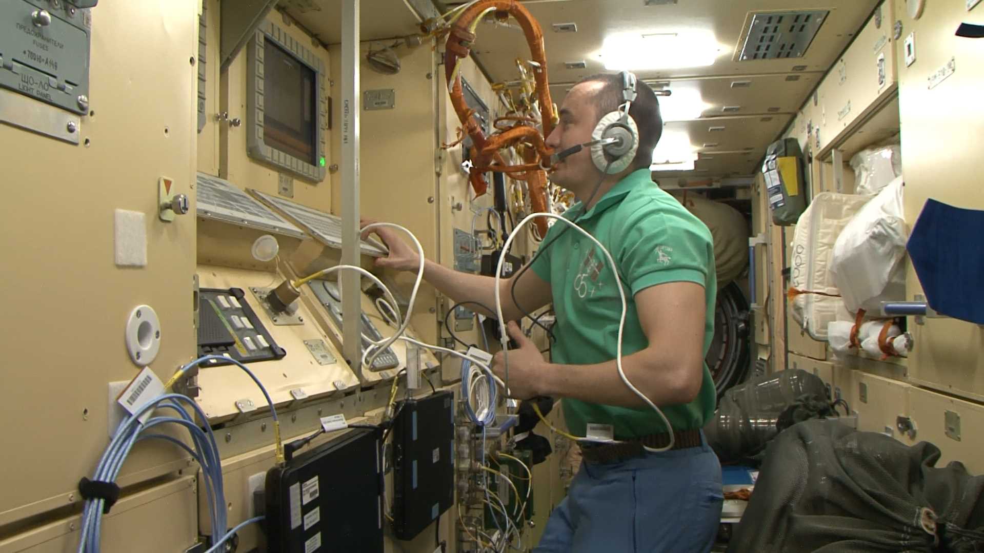 Postazione di controllo di ERA dentro il modulo Nauka. Credit: Roskosmos