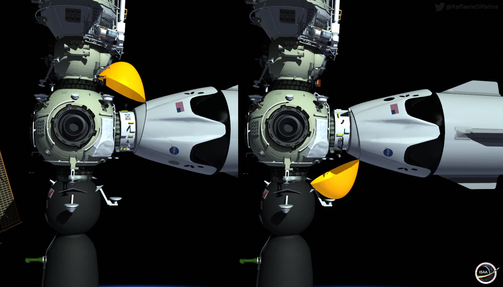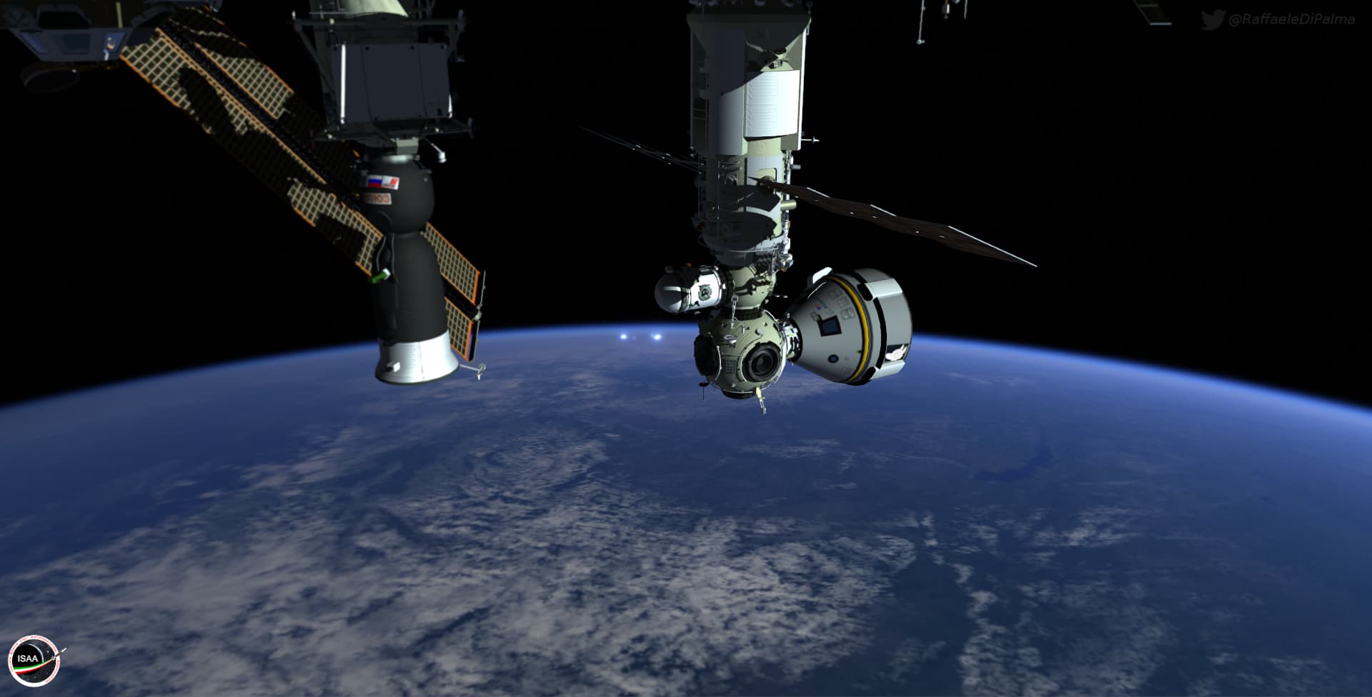 L’angolazione delle Dragon sarebbe si 90° rispetto l’asse verticale, altrimenti ci potrebbero essere problemi alle antenne di Prichal o al comparto oblò di Nauka