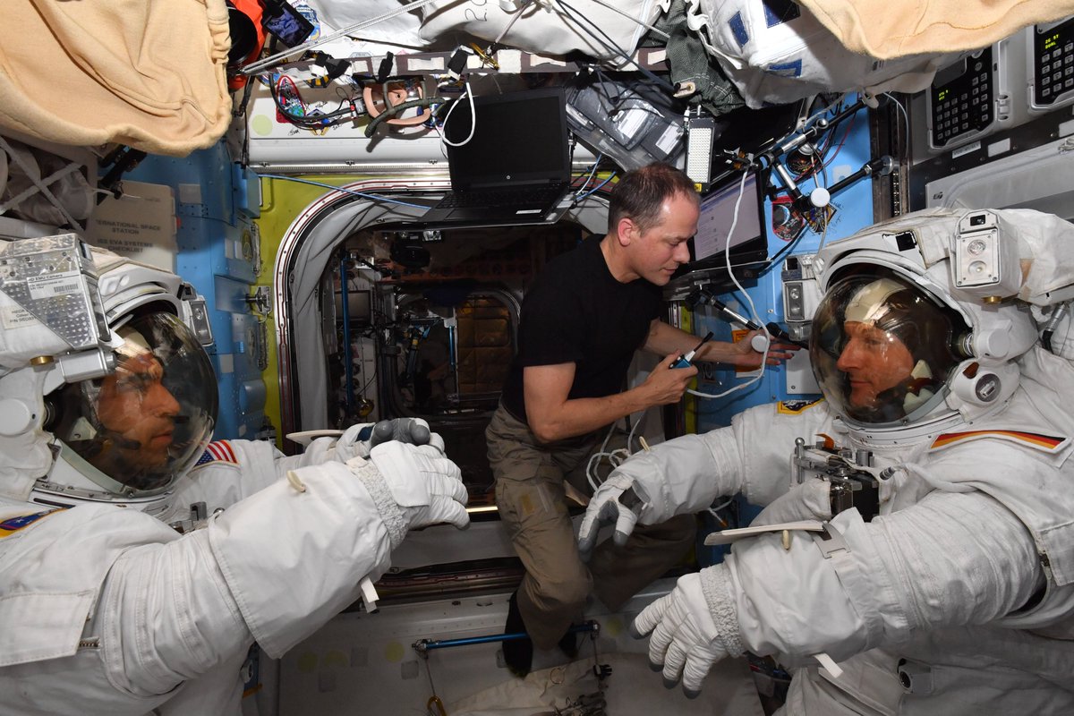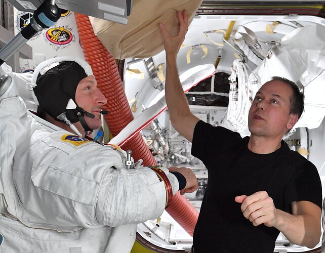 Esercizi propiziatori in corso per l’EVA di Matthias Maurer e Raja Chari di oggi pomeriggio.
