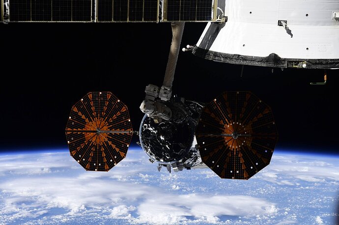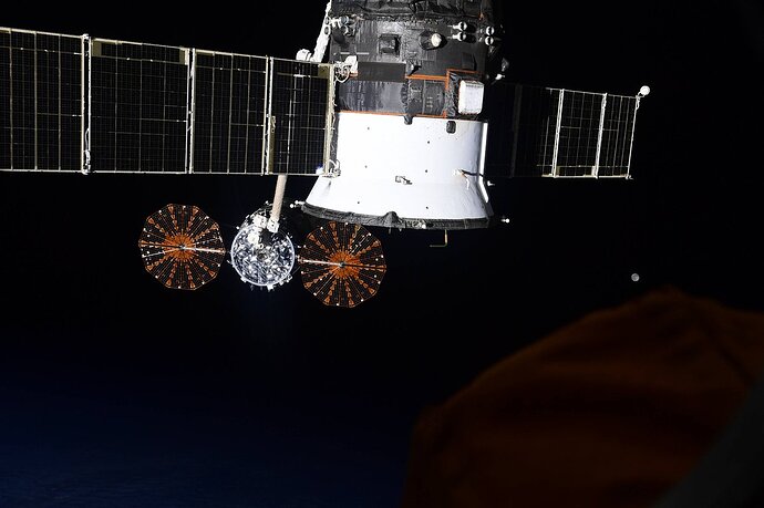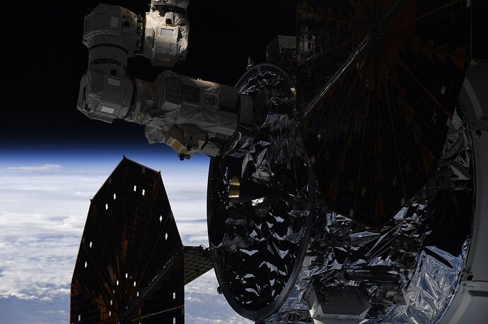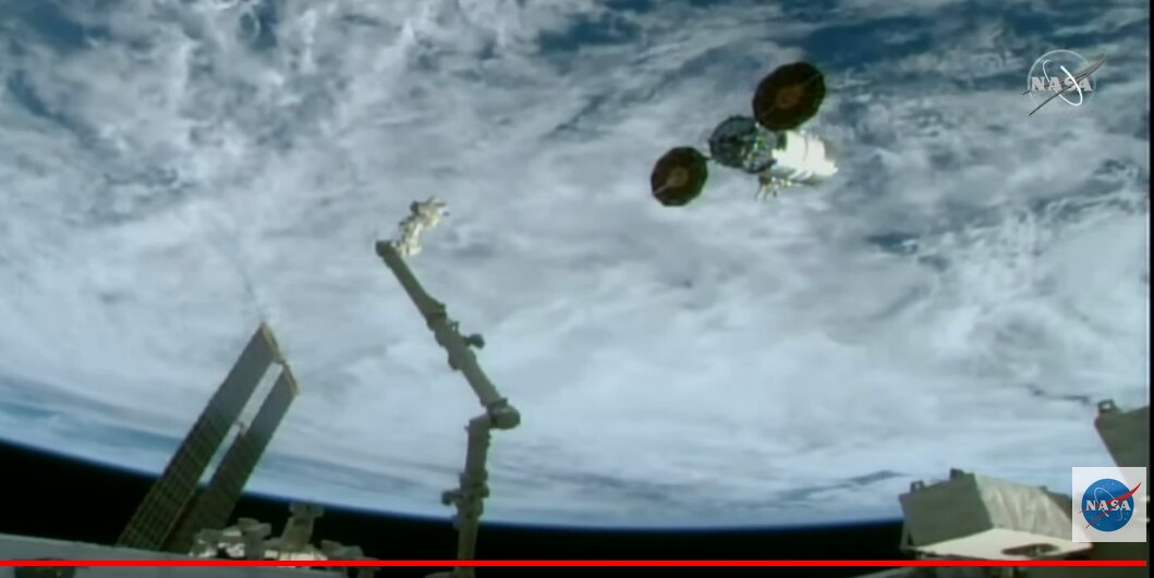 Cygnus NG-16 in posizione di rilascio visto da Nauka