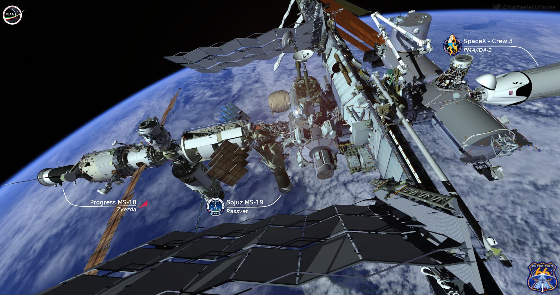 Per questo undocking, la ISS ha cambiato assetto, ponendosi con pma2 allo zenit e Nauka in aft