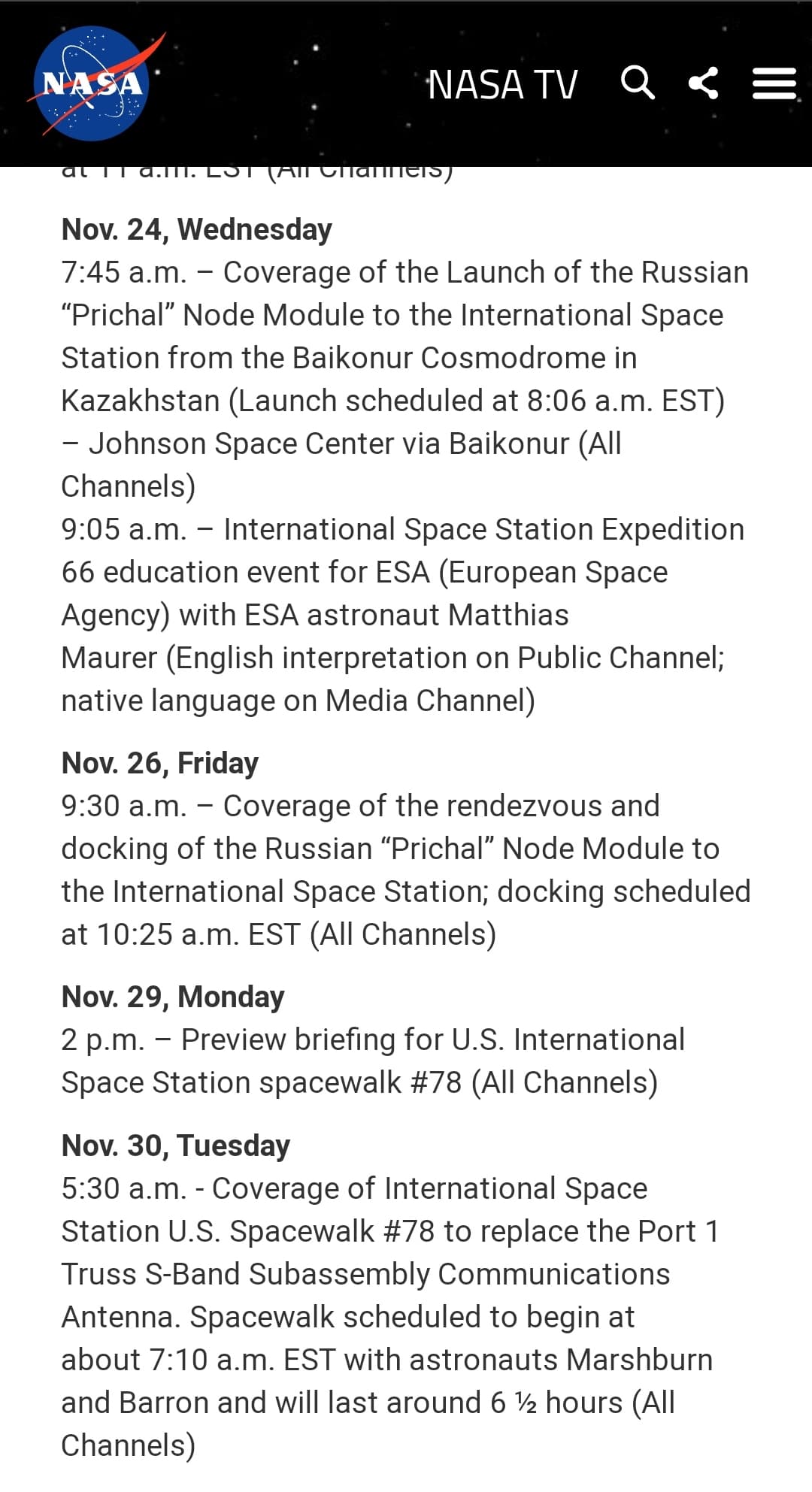 Ho appena visto che hanno spostato la preview su NASA TV da domani sera a 2021-11-29T19:00:00Z, e per il momento L’EVA rimane fissata al giorno dopo (sempre alle 13:10 CET - 12:10 UTC).