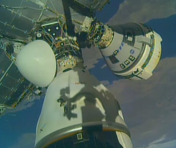 Il Canadarm2 (e Dextre) in azione con CST-100 sullo sfondo ripreso da Oleg Artem’ev. @Raffaele_Di_Palma confermi che i movimenti sono coerenti con l’ispezione della capsula prima del rientro?