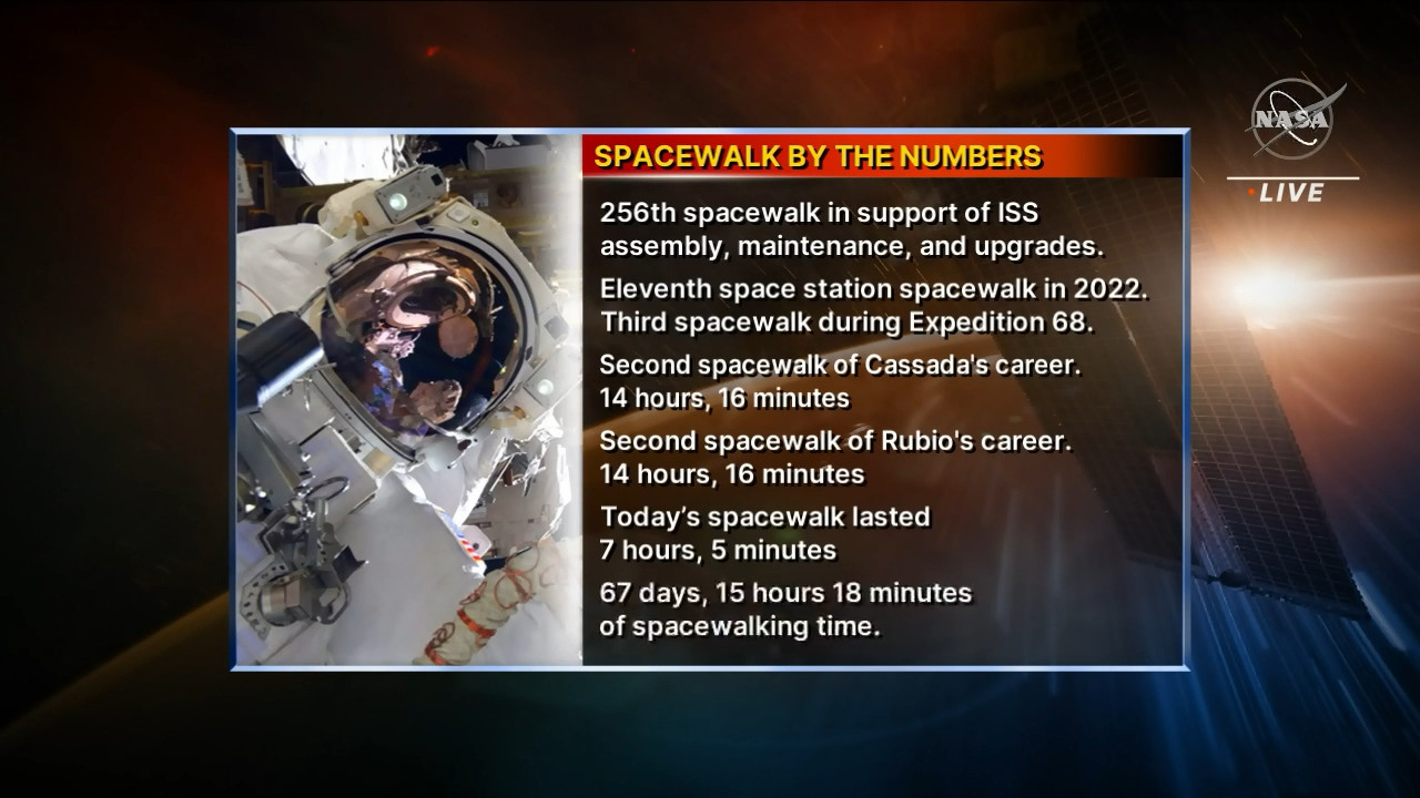 Mi tocca citare Anatolij Zak. Le due tute Orlan MKS sono state revisionate a dovere e l’attività extraveicolare VKD-56 inizialmente fissata per “non prima del 21 dicembre” è stata anticipata al 15. La conferma arriva indirettamente dal palinsesto di NASA TV, ma leggendo gli orari c’è qualcosa di “strano” rispetto al cronoprogramma a cui siamo stati abituati. L’uscita non avrà inizio tra le 12:00 e 15:00 UTC, cioè dopo ben dopo la routine mattutina per l’equipaggio della Stazione e in pieno giorno per il centro di controllo missione. Stavolta Sergej Prokop’ev e Dimitrij Petelin usciranno da Poisk intorno le 2022-12-15T02:20:00Z.