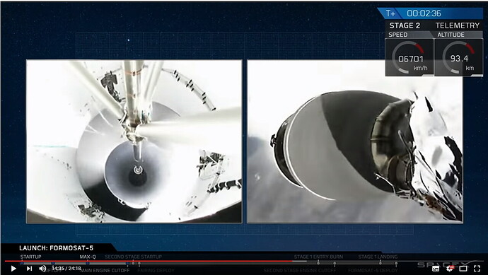 Edit: nella foto allegata vedi la velocita’ al momento dello staging, anche se quella di punta e’ di circa 200 km/h maggiore ed e’ stata raggiunta al momento del Main Engine Cutoff.