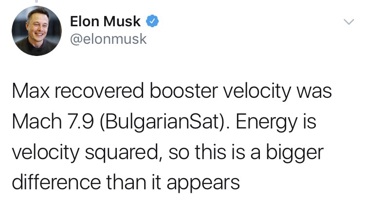 Chissà se la massima velocità di cui parlano, Mach 6.9, sia stata raggiunta dal booster appena prima dello staging, oppure veramente in fase di rientro.