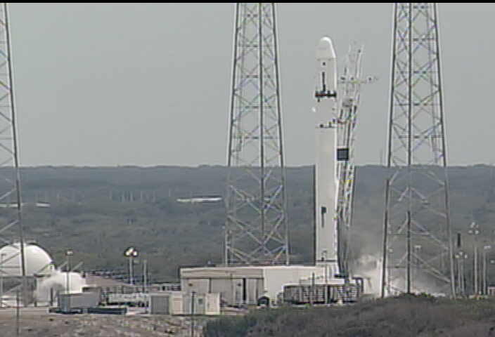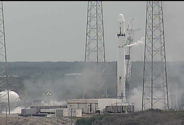 Spaceflightnow: «A flash of fire and smoke was just observed at the base of the Falcon 9 rocket, possibly indicating ignition. But there is no confirmation the engines fired for the full expected 3.5 seconds.»