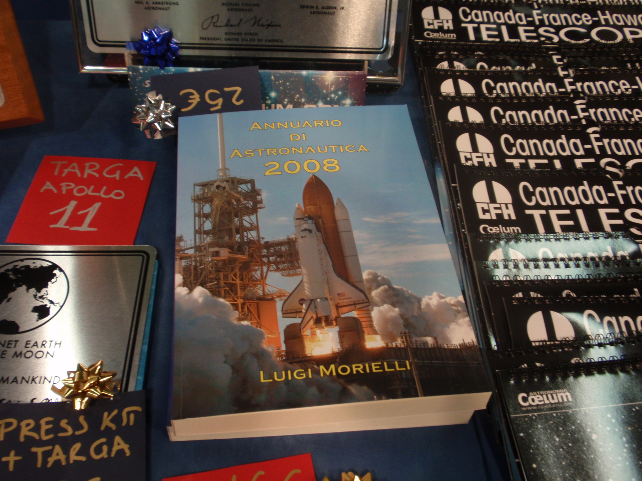 - un pò di roba in esposizione. Da notare l’annuario di Astronautica 2008 del blog del nostro enciclopedico Luigi nonchè i press kit dell’Apollo 11 e 13