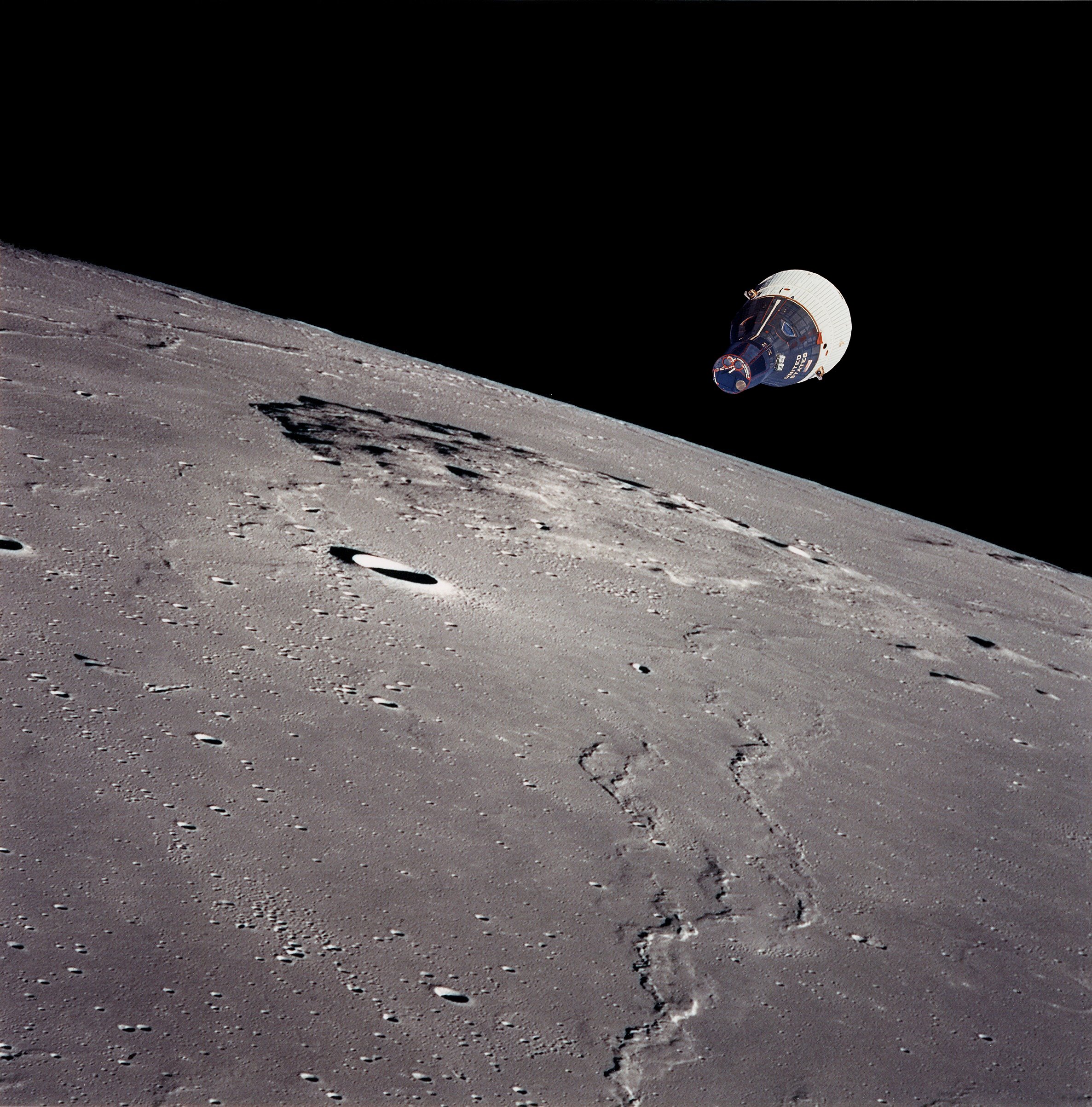 Per gli appassionati di Gemini ho realizzato un fotomontaggio di una versione lunare di Gemini in orbita sopra l’Oceanus Procellarum, con Mons Rumker in primo piano. Ho usato le seguenti foto originali NASA da Project Apollo Archive : S65-63188 (Gemini 7 vista da Gemini 6) e AS15-97-13252 (Apollo 15).