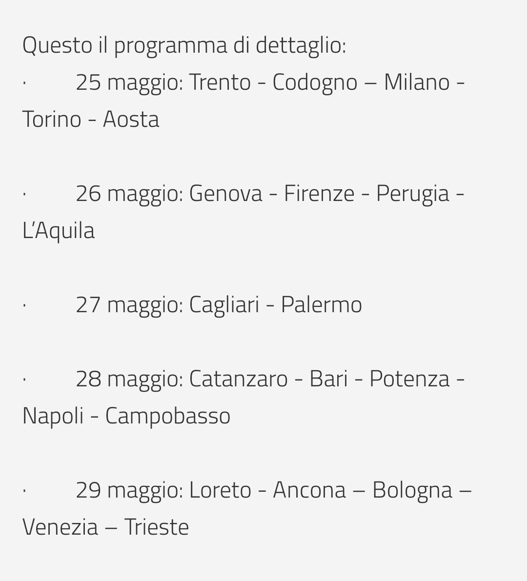 Oggi partono alle 10:15 da Rivolto (UD) e toccano queste città: