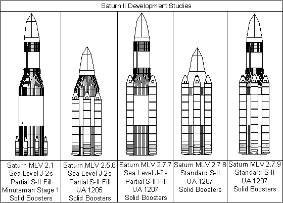 Et voilà, ecco a voi il Saturn INT-18, proposta della North-American del 1966 basata su un primo stadio costituito da un Saturn II, un secondo stadio costituito da un Saturn IVB (usato come terzo stadio anche dal Saturn V) e da due/quattro boosters a propellenti solidi presi dal Titan IIIM (UA 1205 oppure UA 1207).