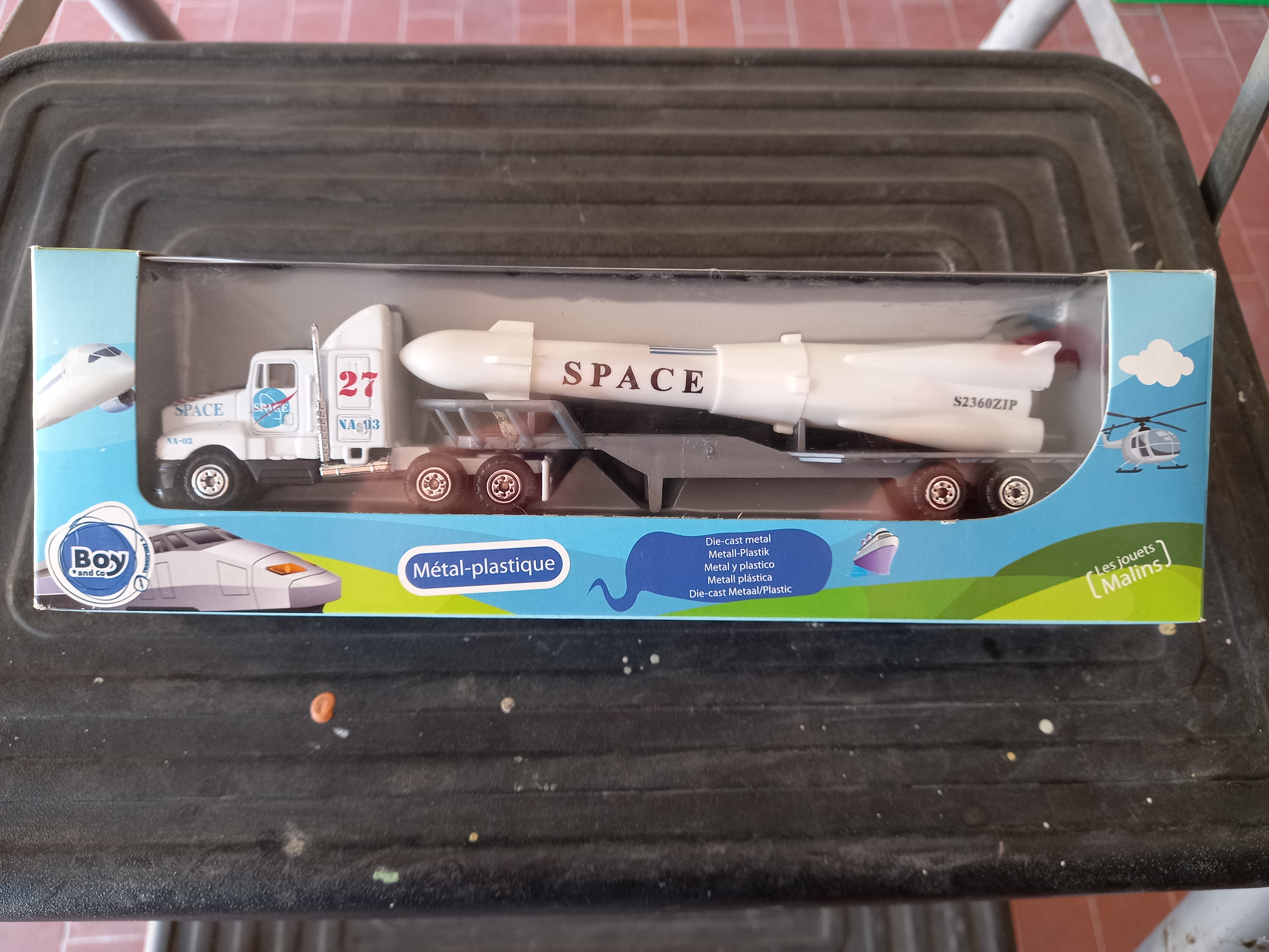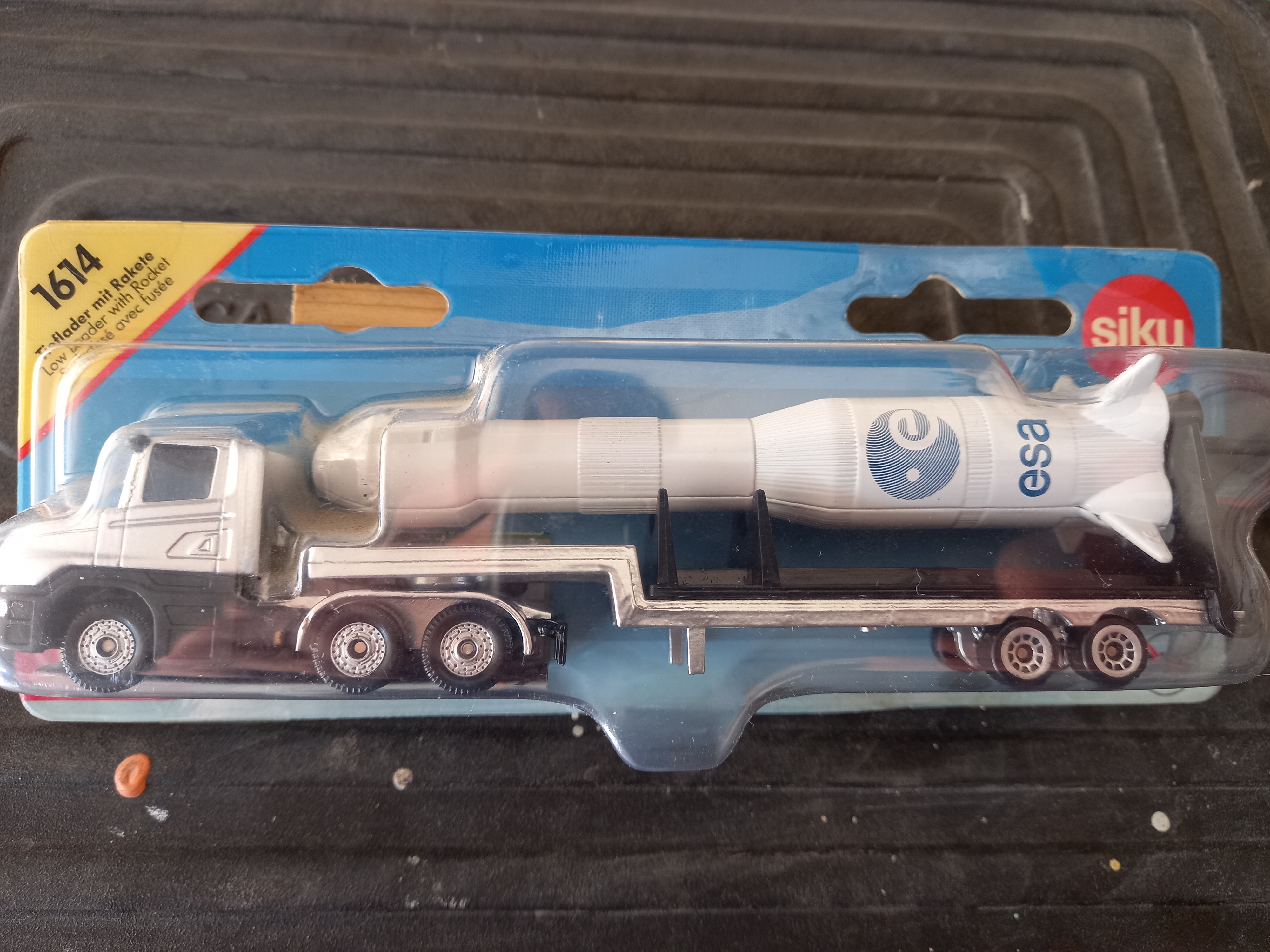 Ciao ragazzi, mi inserisco con questo camion che porta la copia abbastanza verosimile di un Ariane,non chiedetemi l 'anno,ma è abbastanza recente,tipo anni 90.
